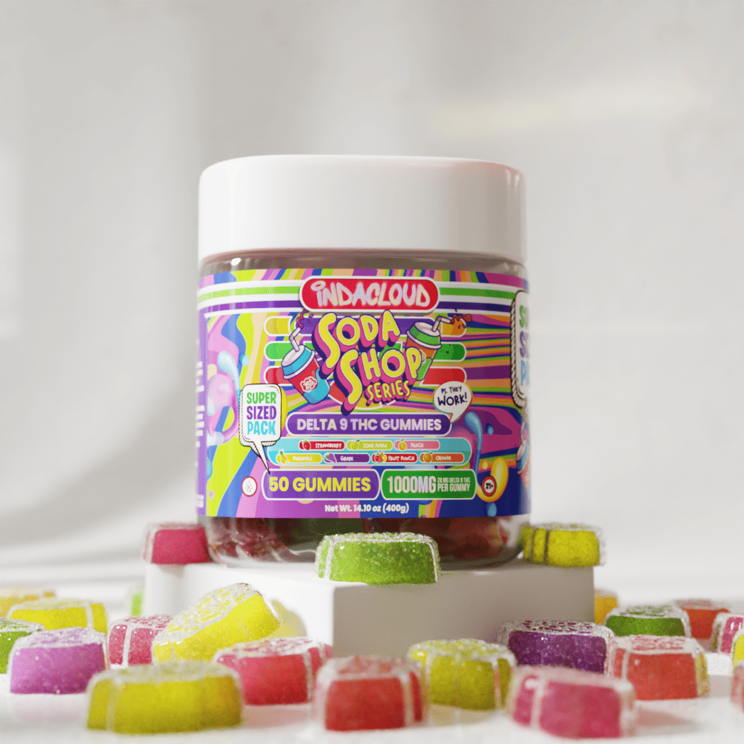 The Delta 9 50 Gummy Jar includes all seven flavors from the Soda Shop series. While specific flavors may vary, expect delicious combinations that mirror classic soda flavors.