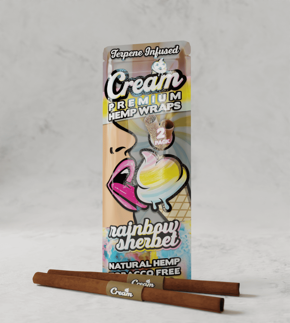 The Rainbow Sherbet hemp wraps boast an exceptional blend of natural flavors and terpenes to achieve their enticing fruit-forward taste. While the specific terpenes used may vary slightly, the focus is on capturing the essence of the classic Rainbow Sherbet dessert. Typically, terpenes like limonene, myrcene, and beta-caryophyllene are incorporated to evoke the vibrant and mouthwatering flavors of zesty citrus, sweet berries, and creamy indulgence. These terpenes are derived from natural sources and meticulously selected to ensure an authentic and enjoyable flavor profile. The infusion process involves carefully coating the hemp wraps with the terpene blend, resulting in a rich sensory experience that complements your smoking session perfectly.