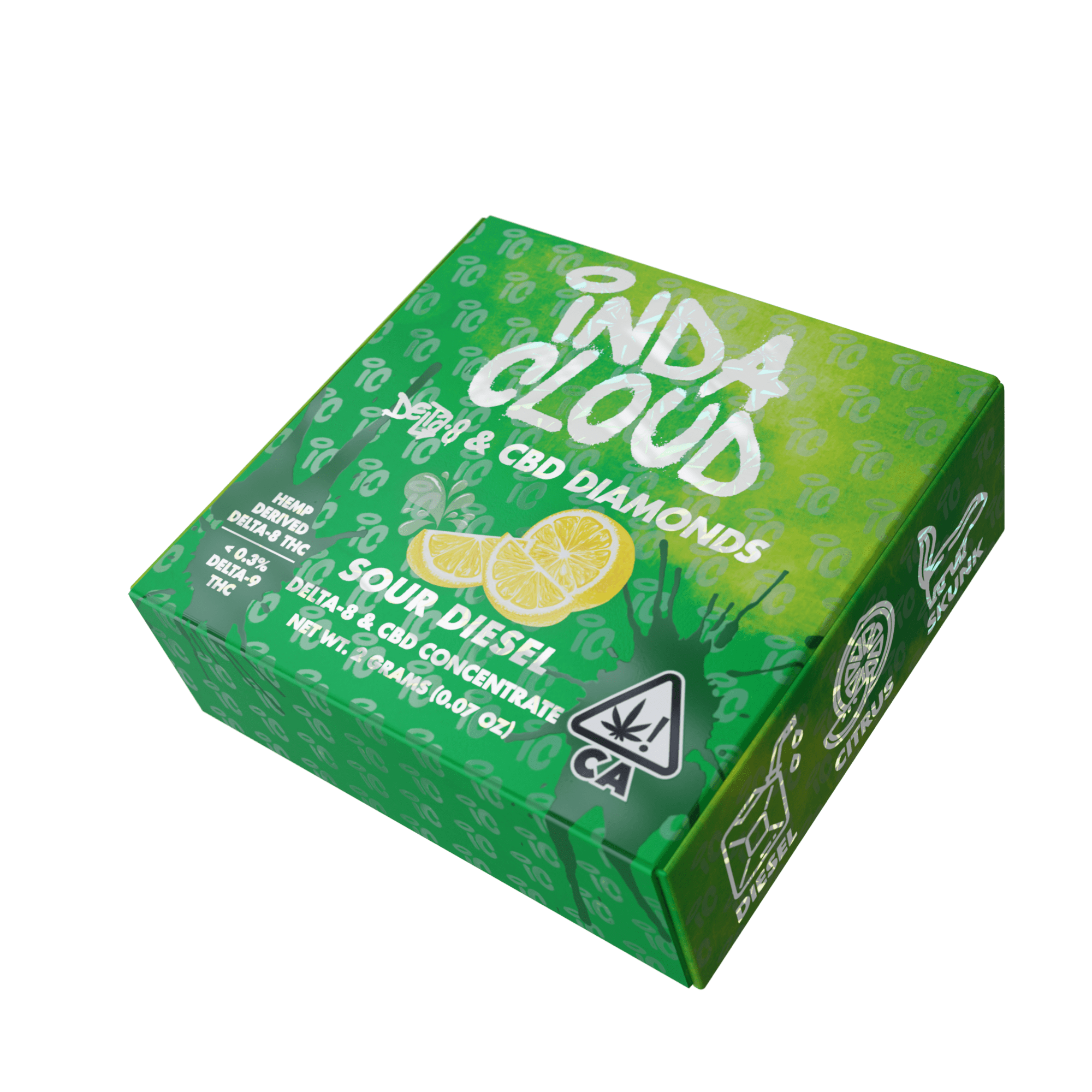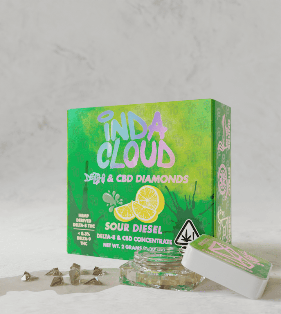 Sour Diesel Delta 8 Diamonds is a unique and premium CBD product Indacloud HQ offers. It is a blend of CBD and Delta 8 concentrate, referred to as "diamonds," suspended in a terpene-rich solution known as "sauce." Unlike regular CBD products, which primarily contain CBD isolate, or broad-spectrum CBD, Sour Diesel Diamonds & Sauce combines the benefits of CBD and Delta 8, offering a more potent and versatile experience. The CBD is extracted and isolated from intoxicating elements, ensuring it retains the non-psychoactive properties, while the Delta 8 provides a mild psychoactive effect. This combination allows users to experience the therapeutic effects of CBD alongside the subtle euphoria and relaxation induced by Delta 8, creating a well-rounded and enjoyable experience for consumers.